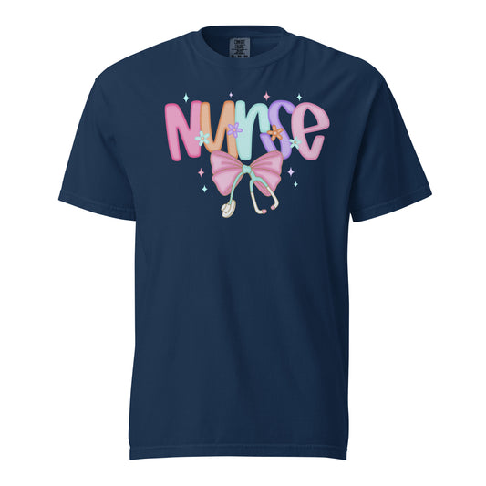 Floral Bow Nurse Heavyweight T-Shirt